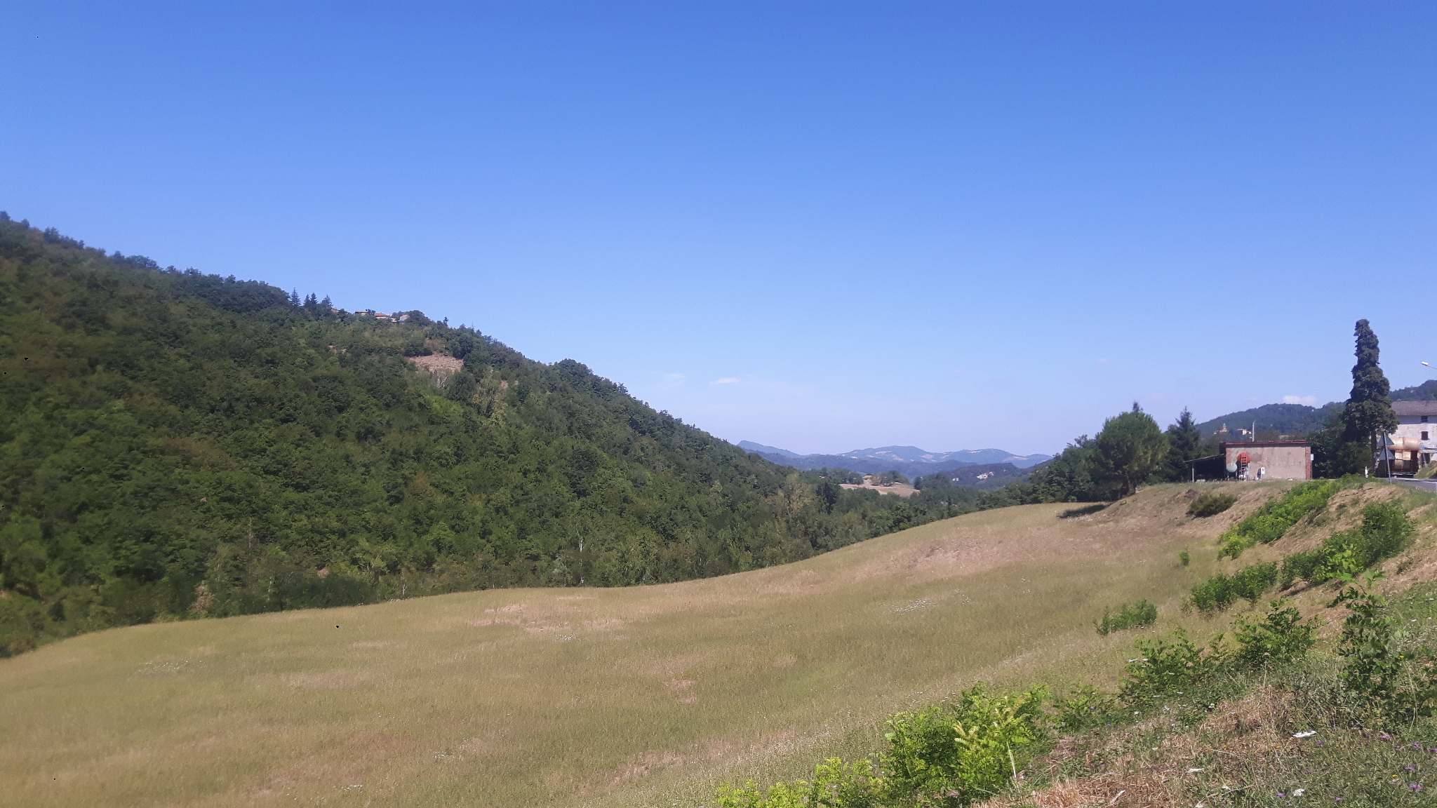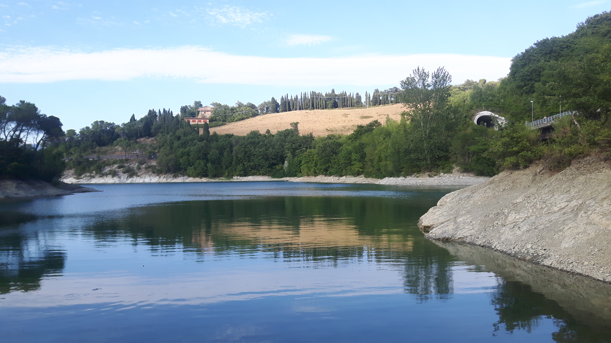The title sums up today pretty well. We had to get through this hill area into the Toscana. Our goal was to reach the lake, since I wanted to go swimming there. But the way until there has been a long of pushing again. But I have to admit, if I had to choose this way from today or taking the main road straight through without pushing, I would still take this one from today. The landscape is so much better and even if I have to push the whole day, at some point it has to get down again, and I am able to train my body and mind while puhsing up. And with mind I mean the mental endurance.