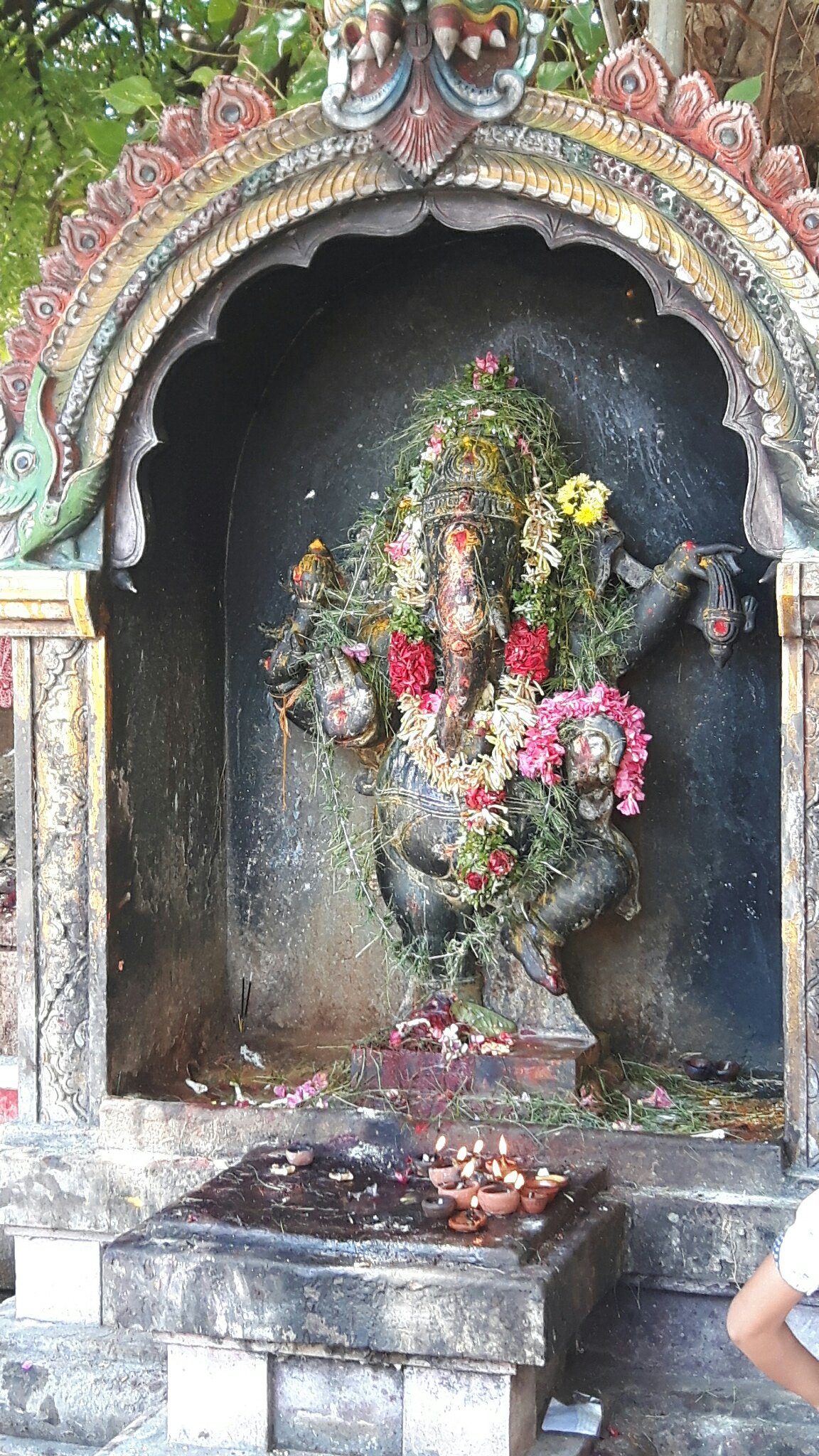 This was a Ganesha Statue, again with grass and flowers, because the favourite food of the elephant is grass.