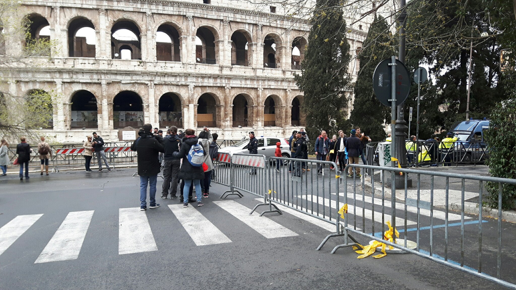 What we also noticed was the great amount of military and police cars standing around. Also the area close to the Colosseum was closed, since there would be a Procession in the evening.