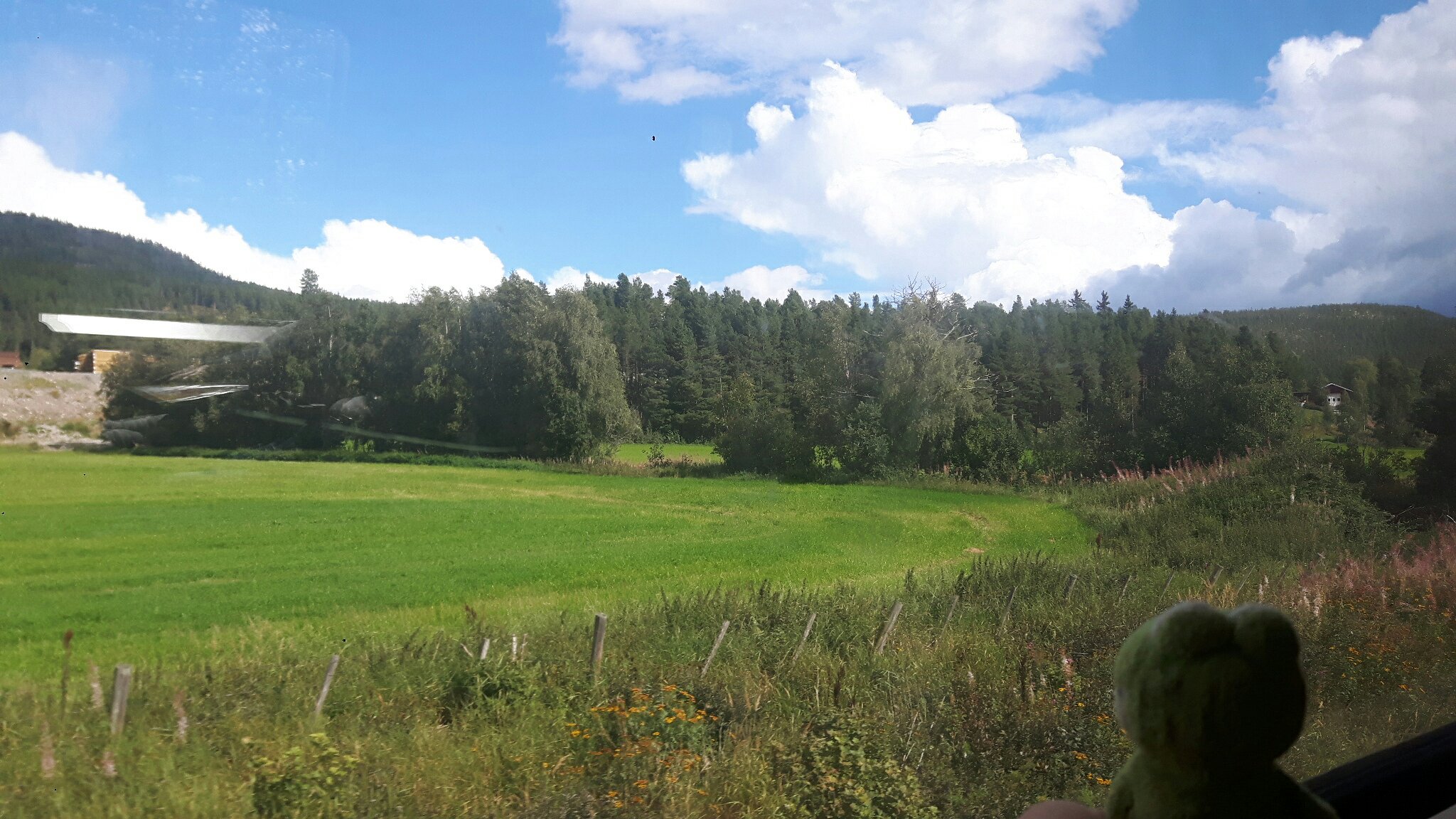 We only took the train for a bit longer than an hour, until we had to change into the next one. Now the area slowly started to change and it started to look more like Norway now. Unfortunately the window on the next train was a little bit dirty, so the pictures were not the best, but here have som impressions of our tour with the train.