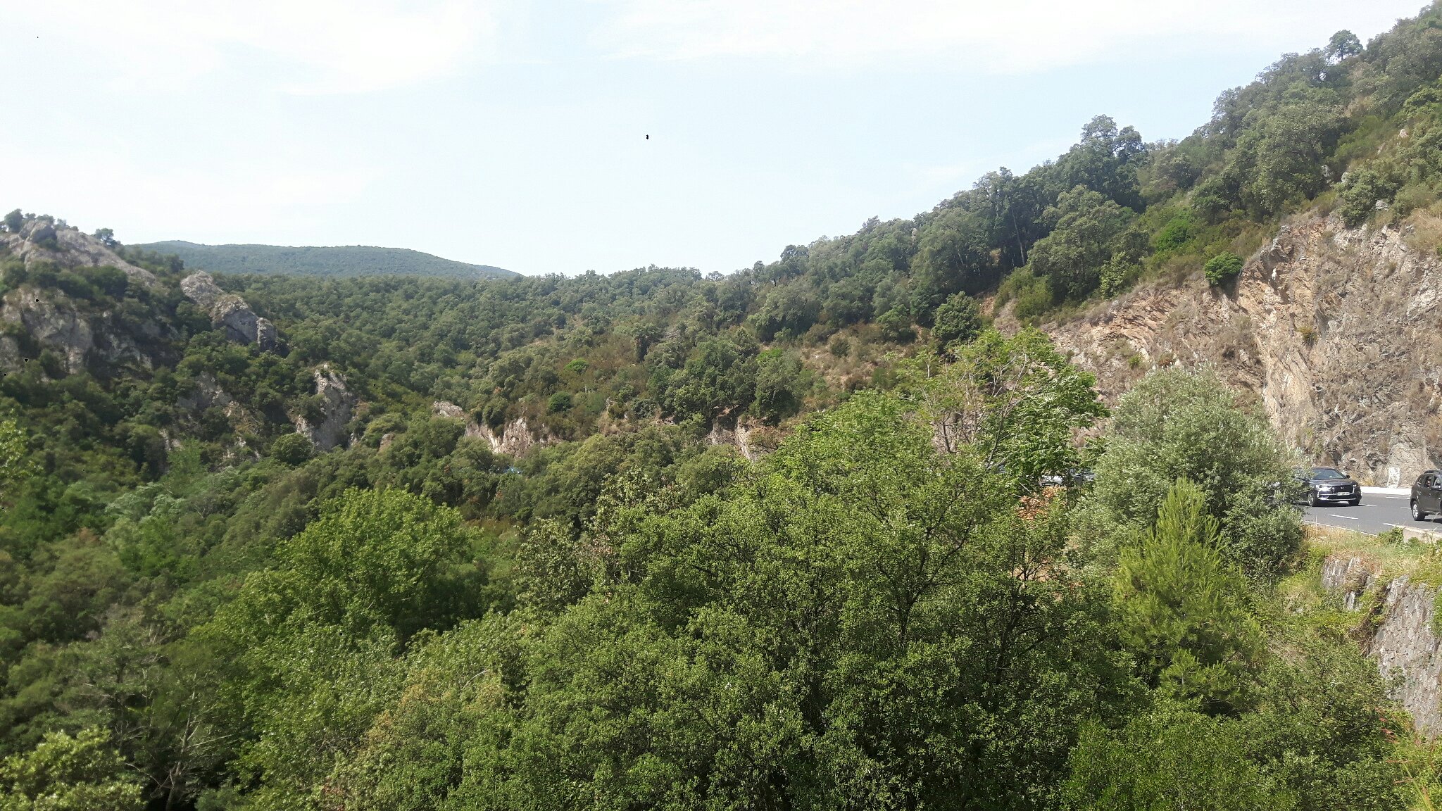 The day started off quite nice with breakfast at the beach. But then I had troubles finding the right path again, since the bicycle road led me into a dead end and there were no signs anymore as well. Either I am really bad at seeing them, or they just, stop existing at some points? But I am really searching for them at every cross section, wo I do not really understand.. Anyway, I followed some roads and found a bicycle way again which I was able to follow until I got to the mountain road which led to Spain. There I had to follow the main road, which was very busy, so naturally these were not very nice conditions. At least I had enough space at the side of the road. At some point, since I had to cross the mountain chain, the road went uphill and the cars were rushing by me, and I got pretty annoyed, but then at some point, the traffic jam started. From then on it was rather funny. Instead of having cars rushing by me, I passed and got passed by the same cars in turns, all over again. I was able to ride my bike slowly at the side and they had to stop and go all the time. Some of them even started to cheer for me every time I passed them again. And the road was not too steep, so I was still able to ride, even though very slowly.