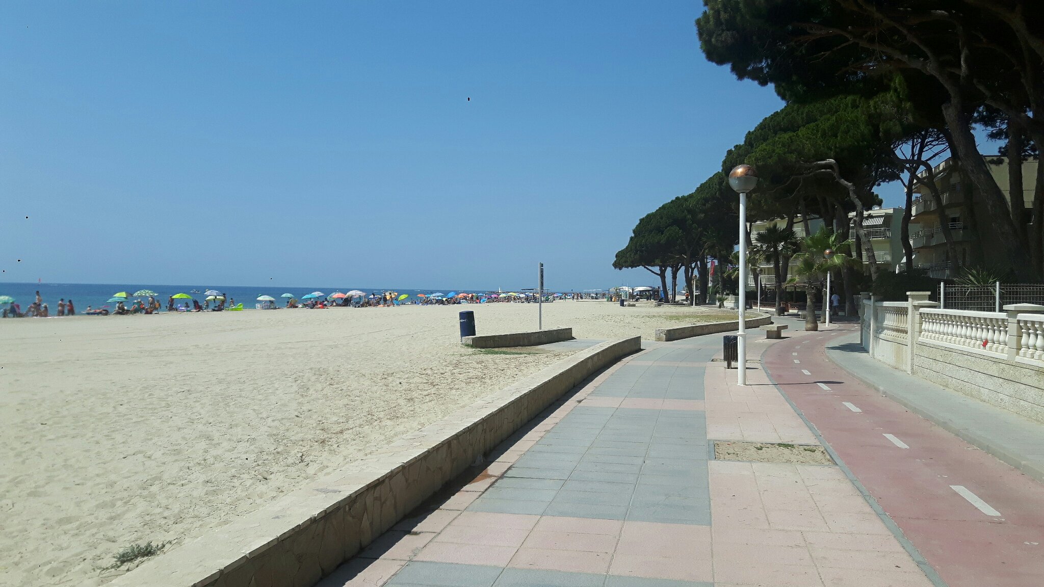 At some points one hotel, one apartement cluster followed after another, all with pools at the seaside and with many people at the beach. Either I just came through some more crowded areas, even though shortly before Barcelona it was quite crowded as well, or the holidays started and now it is going to be crowded everywhere.